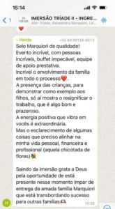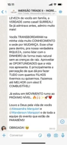 A Tríade é um treinamento presencial imersivo e transformador, voltado para quem busca sua melhor versão, resultados extraordinários, e uma vida próspera e abundante. Não se trata de uma palestra, nem de um evento exclusivo para casais, mas de um dia inteiramente dedicado à absorção de conteúdo estratégico, fundamentado em princípios bíblicos, filosóficos e científicos.